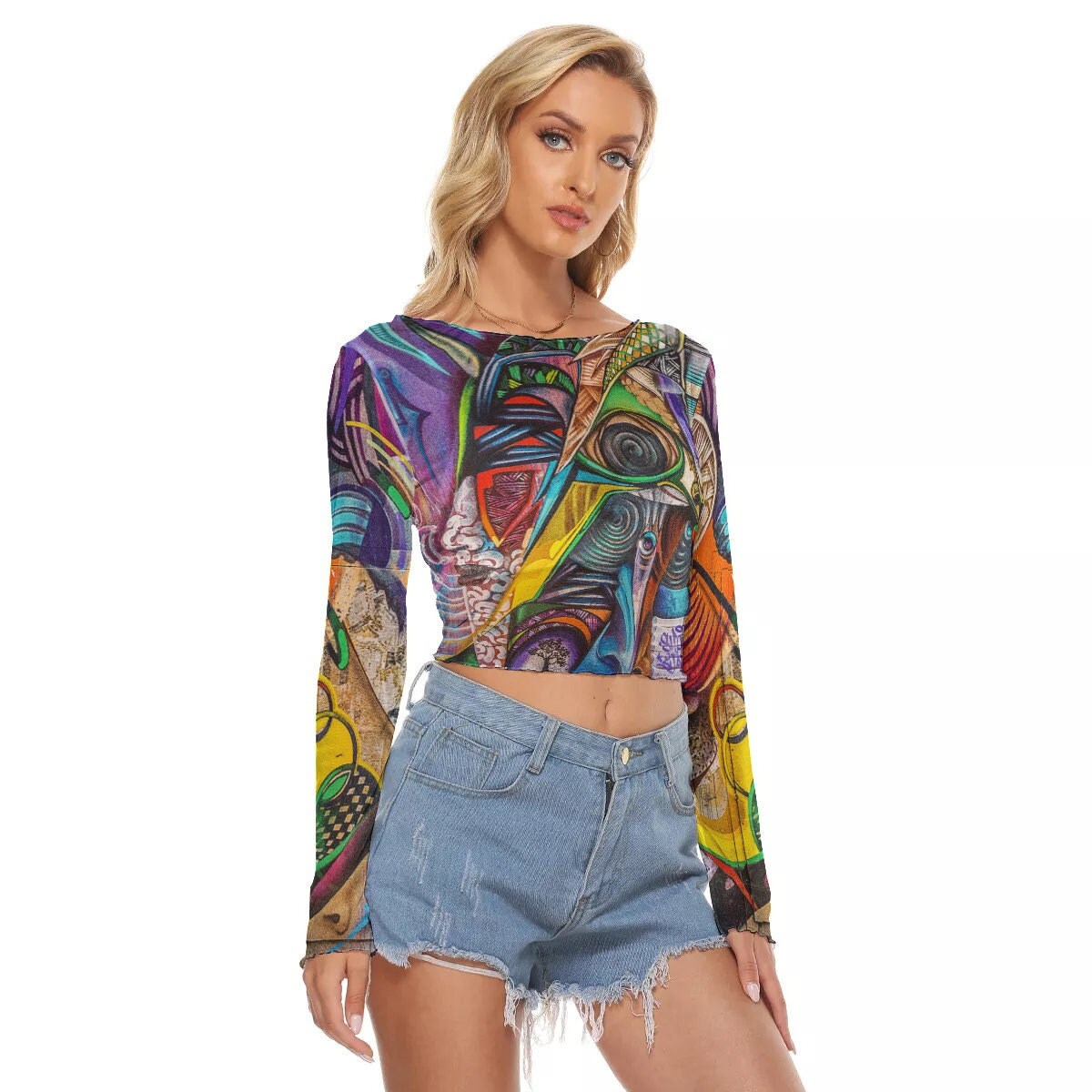 Unique print design. Lightweight and breathable, semi-sheer silky mesh material.