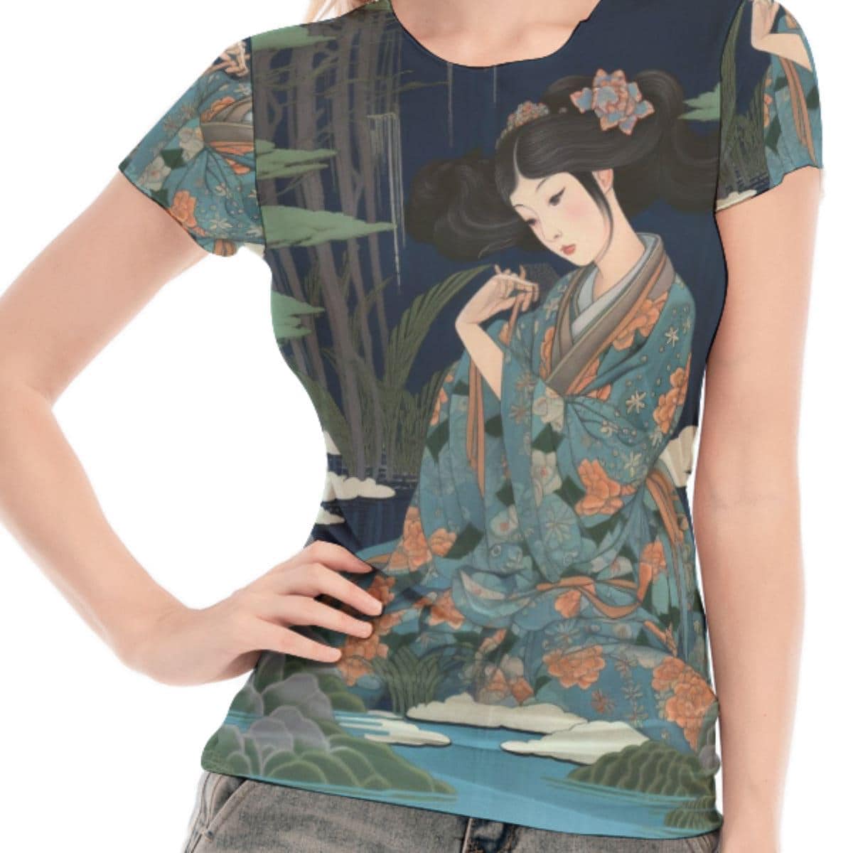 Japanese traditional painting art print women's mesh tee-shirt three styles