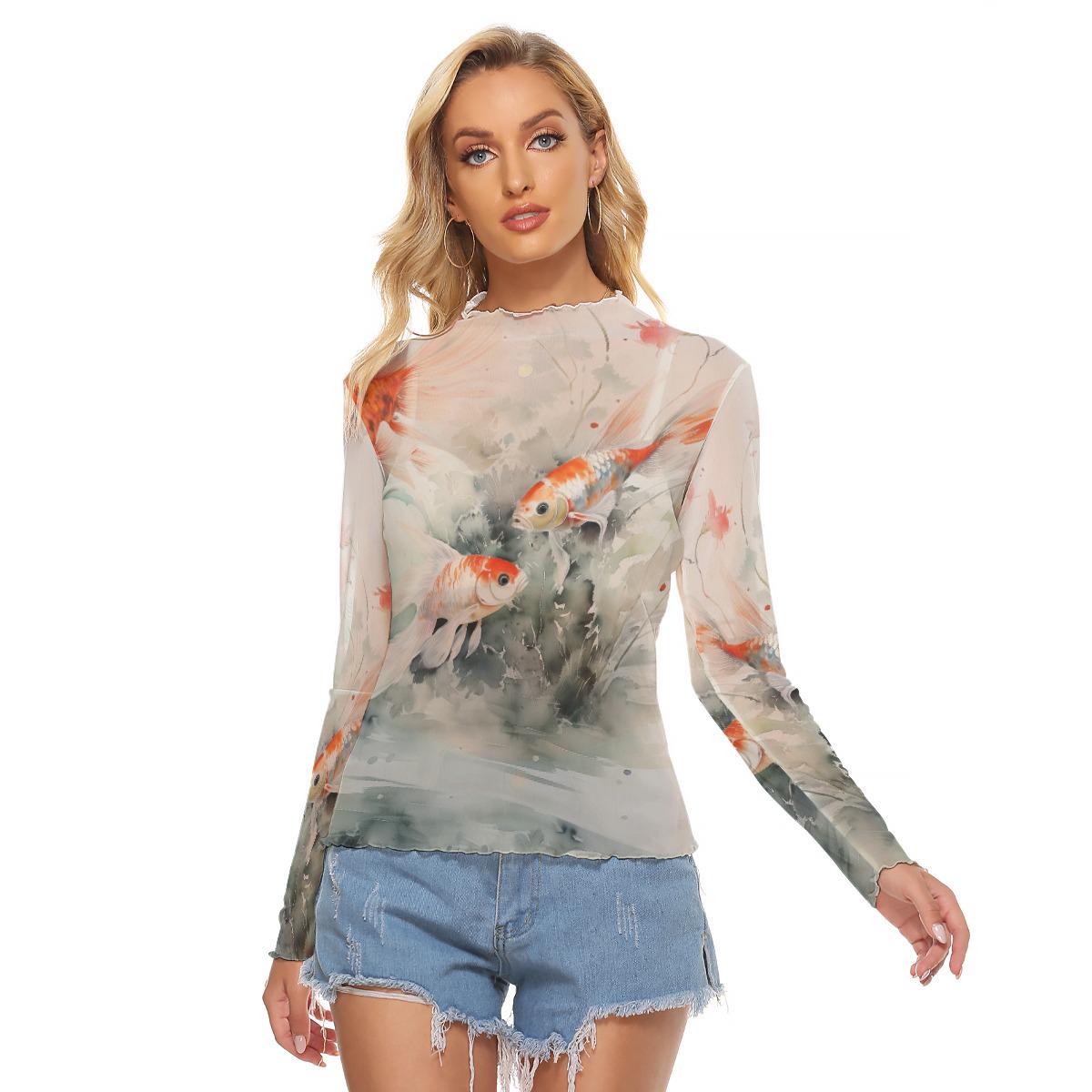 Koi Japanese Traditional Women's Mesh Semi-Sheer Crop Top Long Sleeves Three Styles