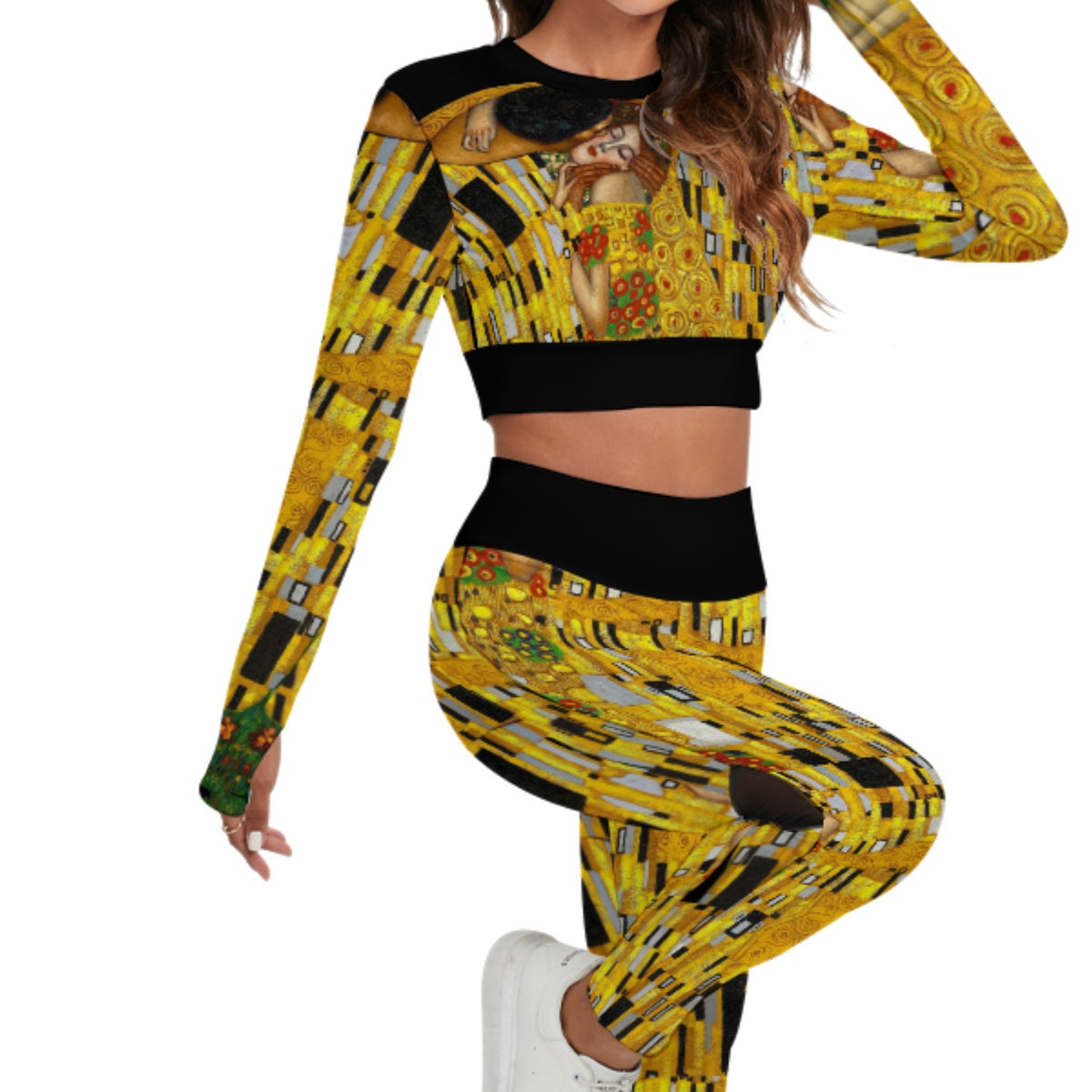 Klimt Art Print Women's Athletic Set With Backless Top And Leggings, Three Styles