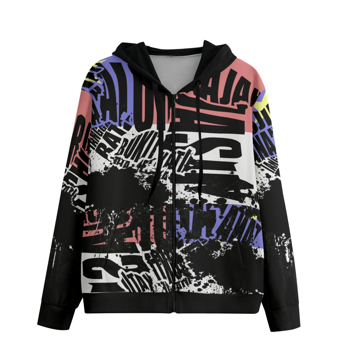 Newsprint Cotton Unisex Hoodie: Black & Colorful Zip-Up Jacket